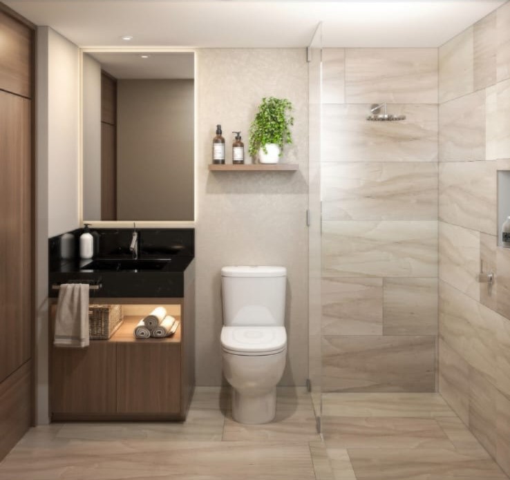 - Fixed bathroom screens with tempered glass.