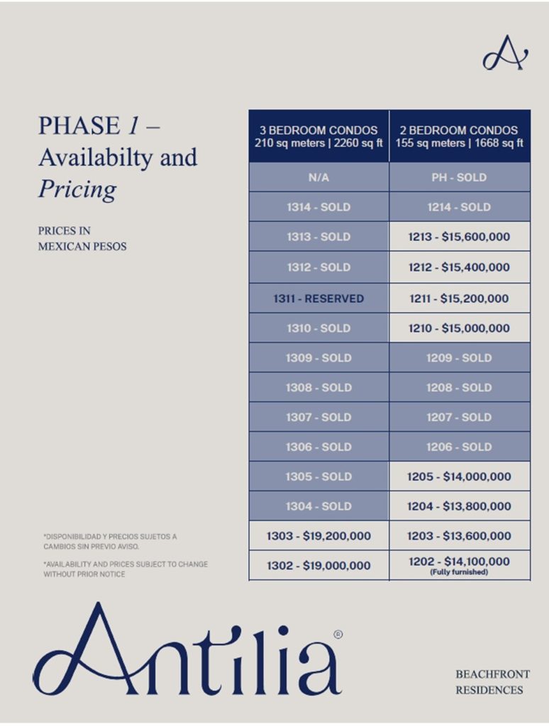 Pre-sale prices start at $13,400,000 MXN for two-bedroom units and $18,300,000 MXN for three-bedroom units.